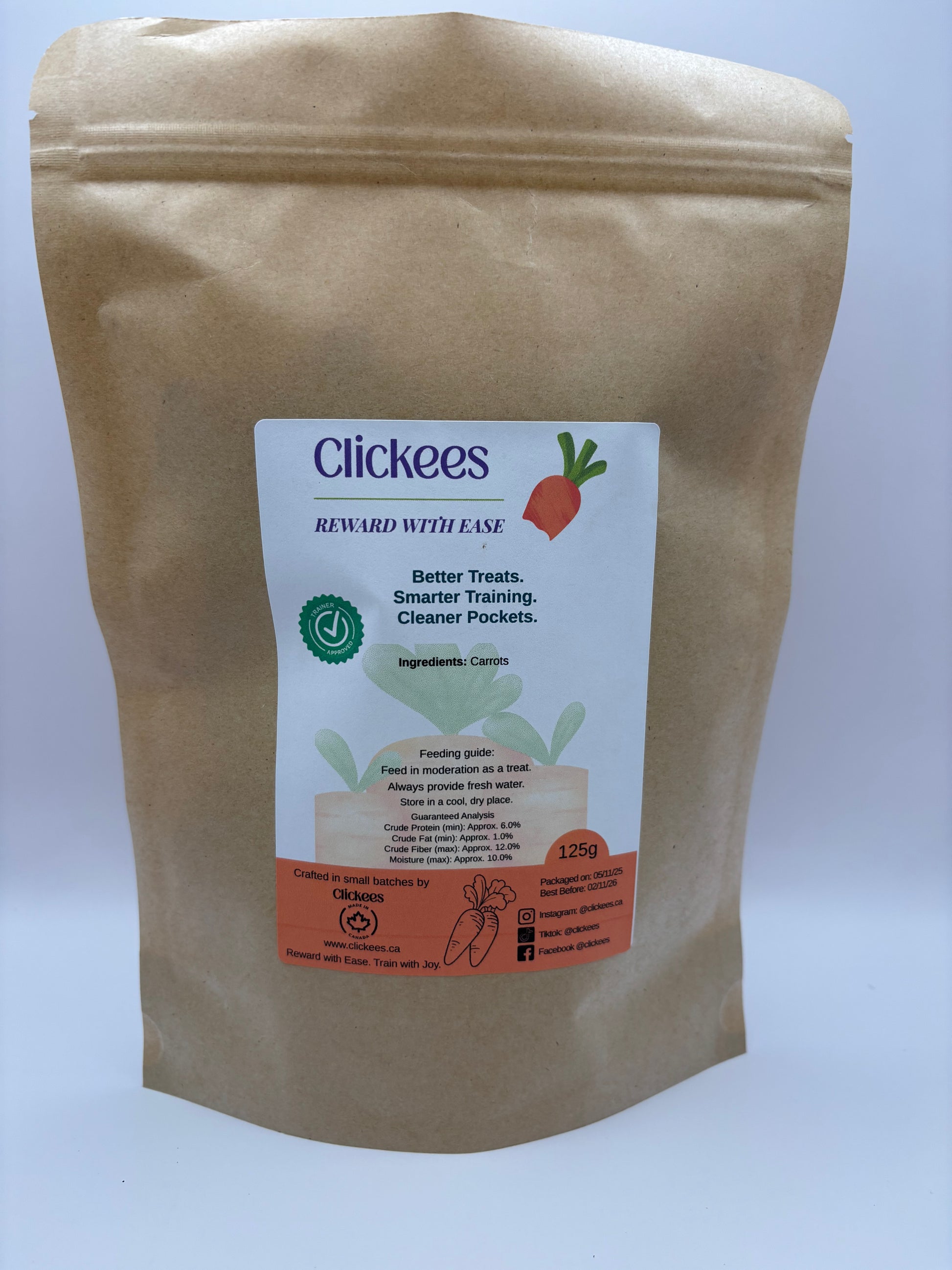 Original Clickees are made from 100% pure carrotsāno added sugar, no dyes, no artificial flavors, and zero fillers. These crunchy, bite-sized treats are perfect for positive reinforcement training, reinforcing good behavior, or simply sharing a moment of joy with your horse.